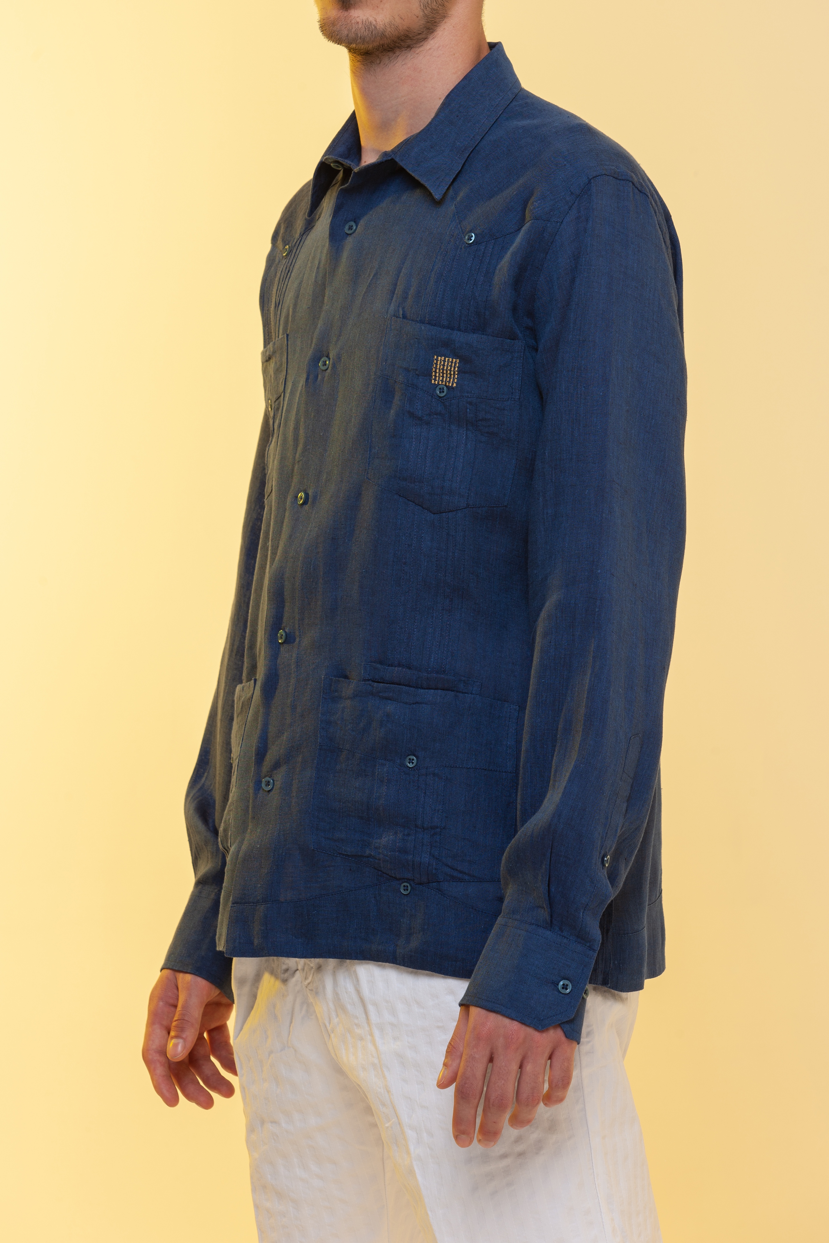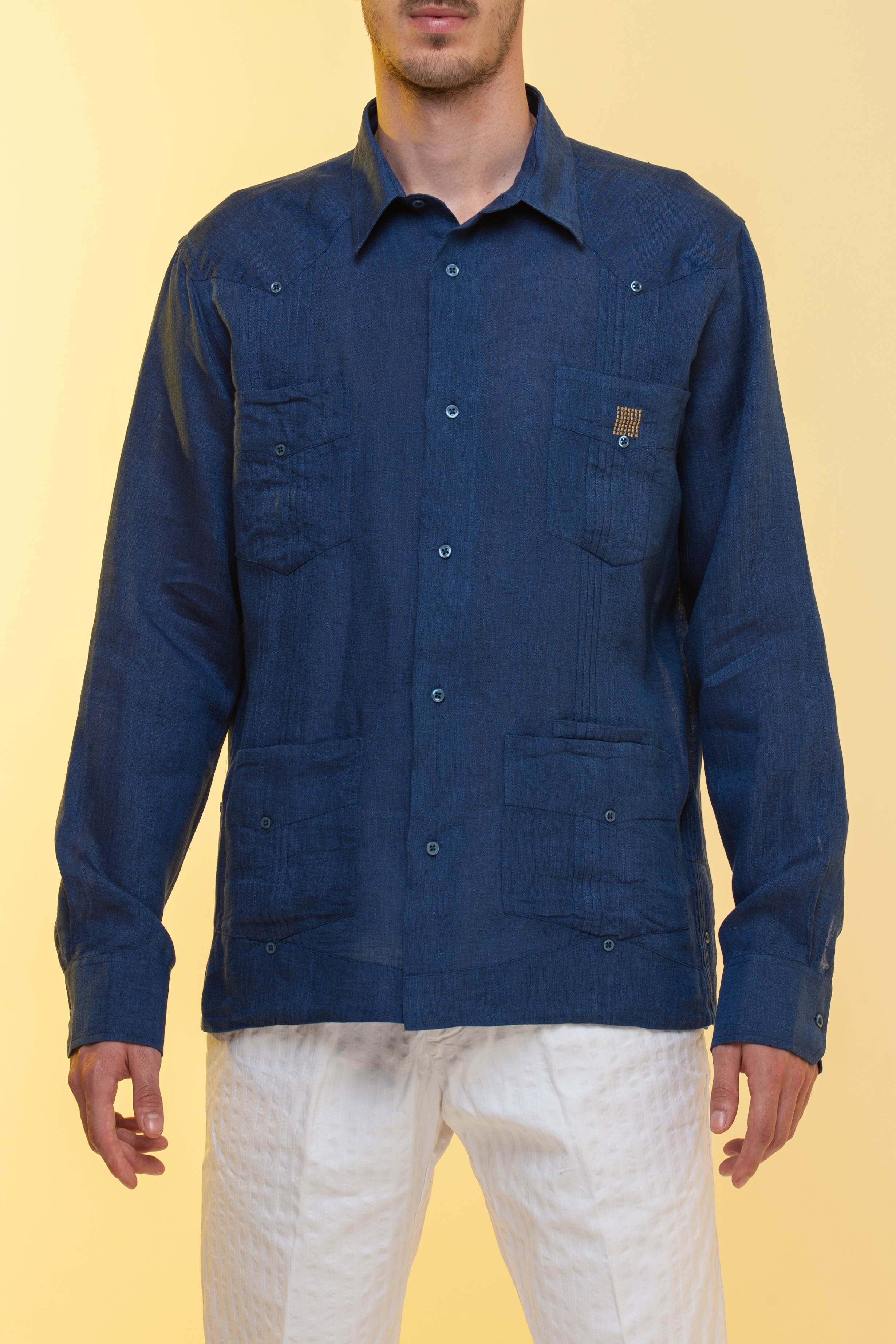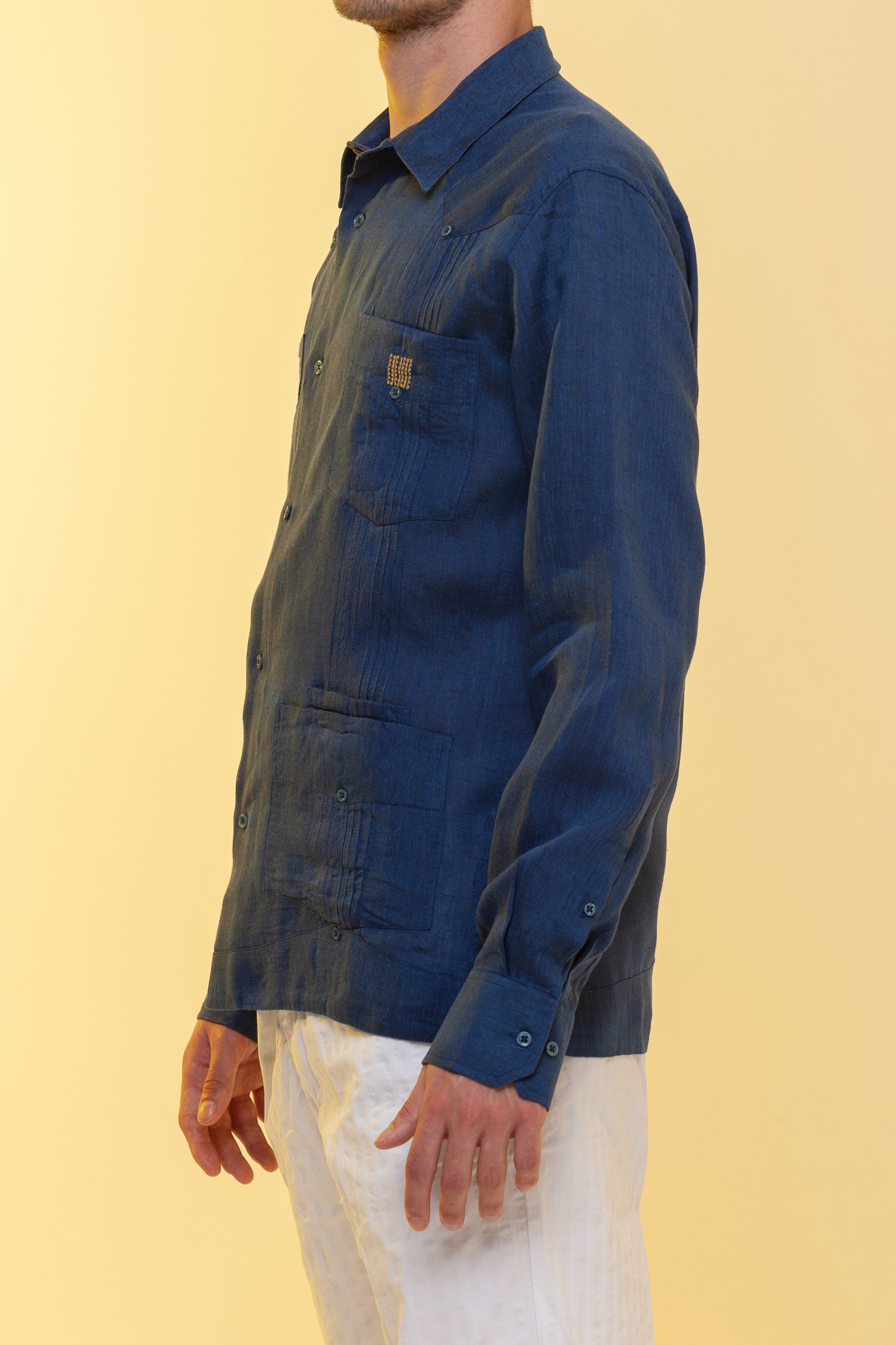 La Guayabera Festival, colore blu mélange in 100% lino.