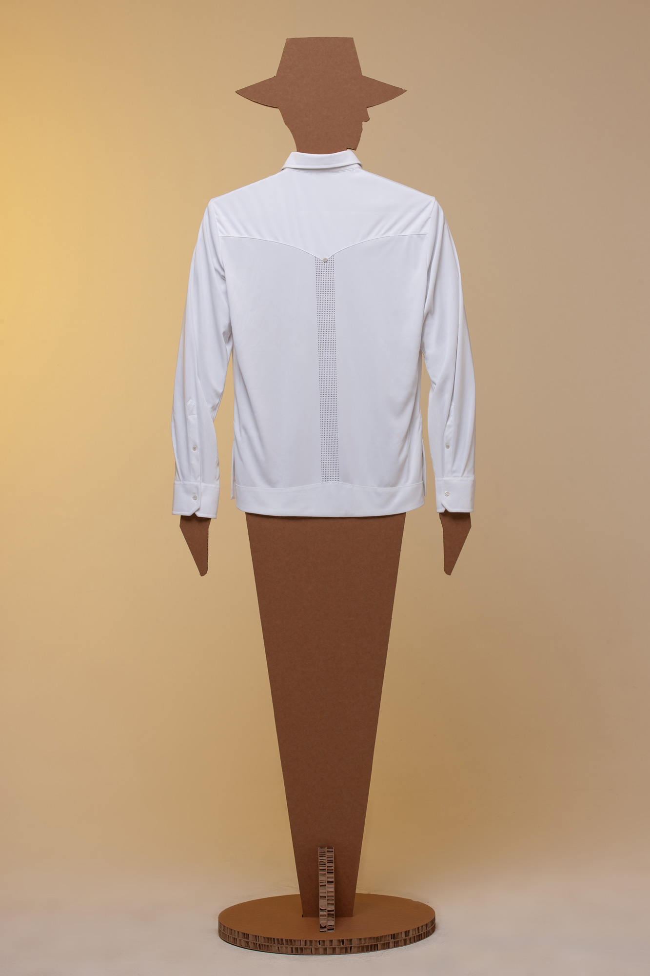 laser) che si estendono dalla parte anteriore e una dalla parte posteriore della camicia.