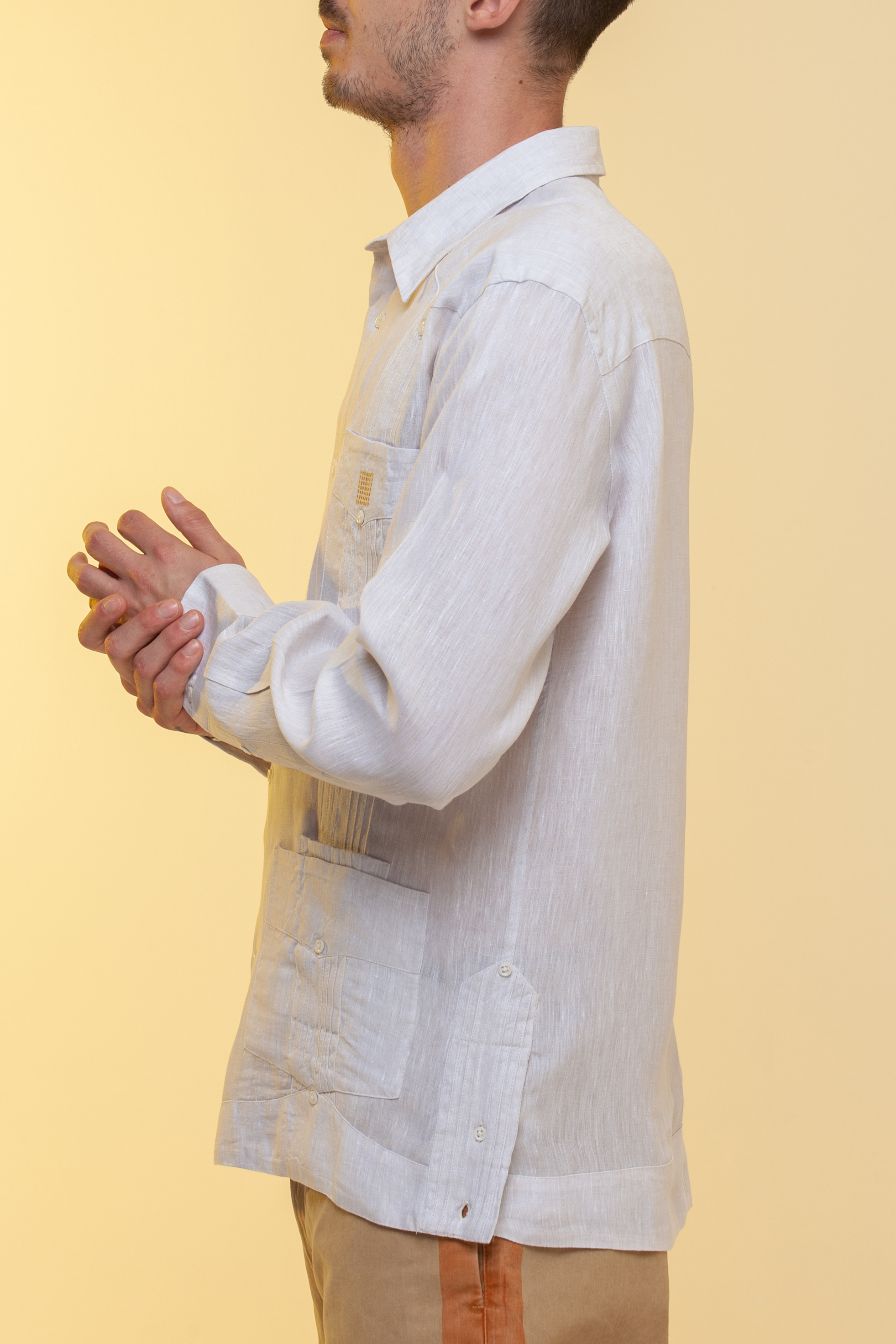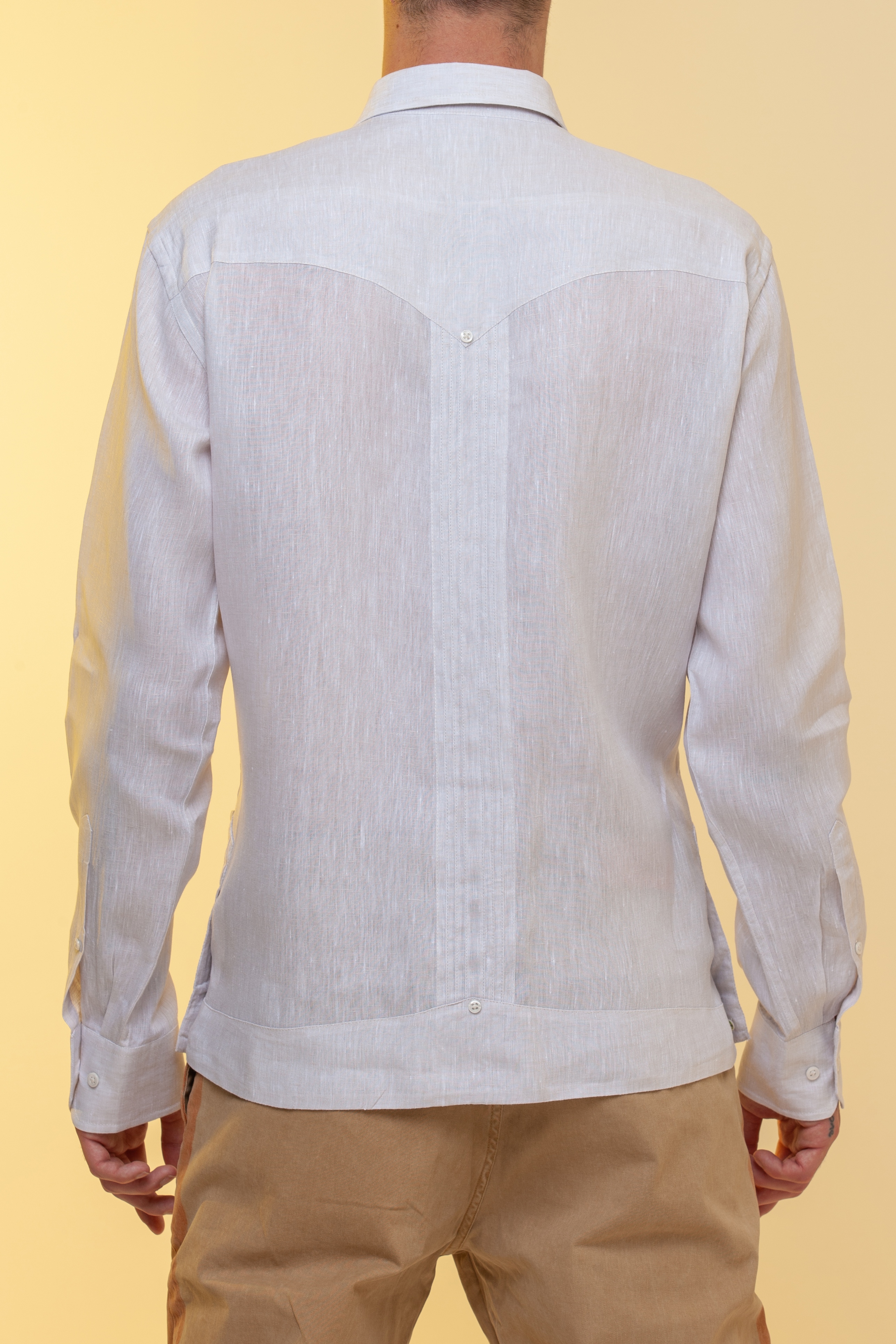 La Guayabera Safari color beige melange in 100% lino.